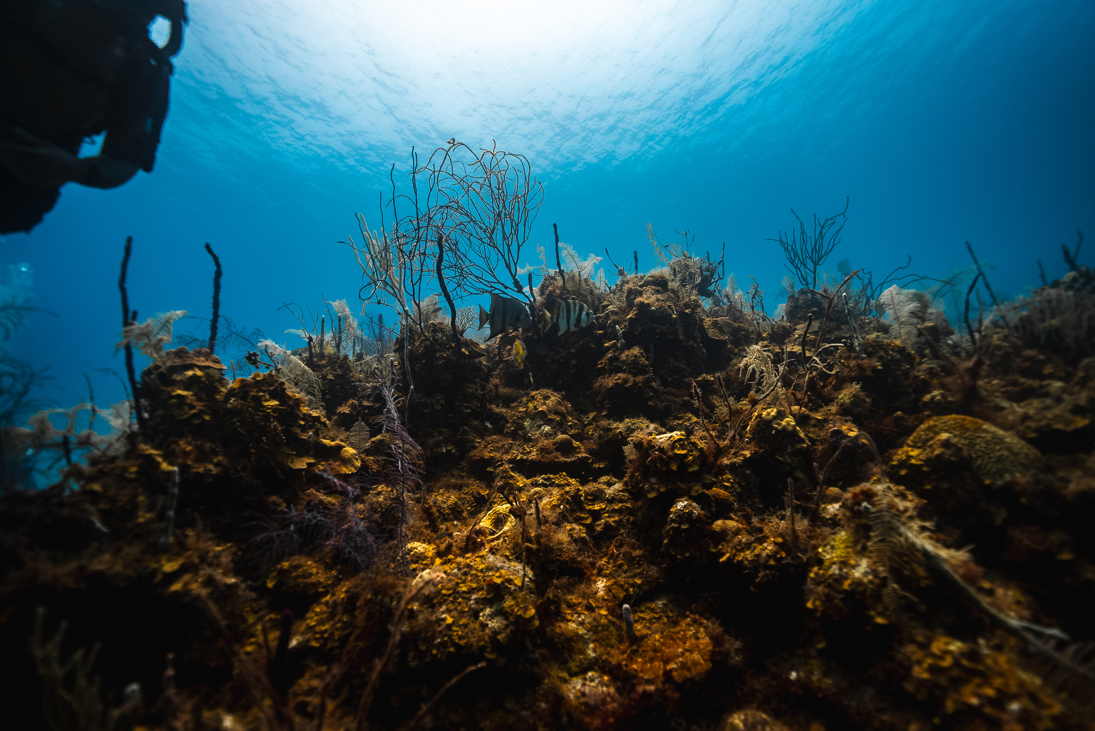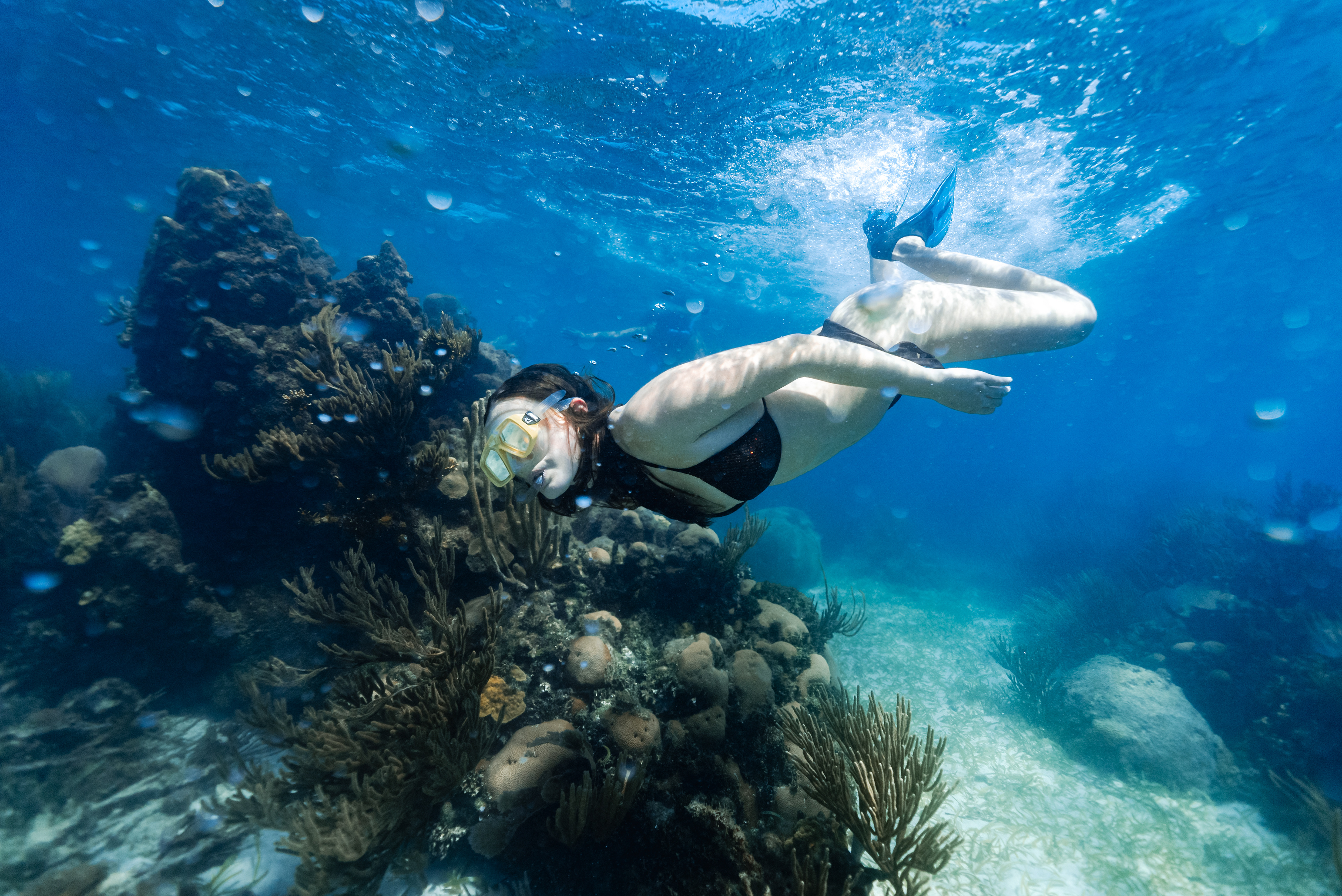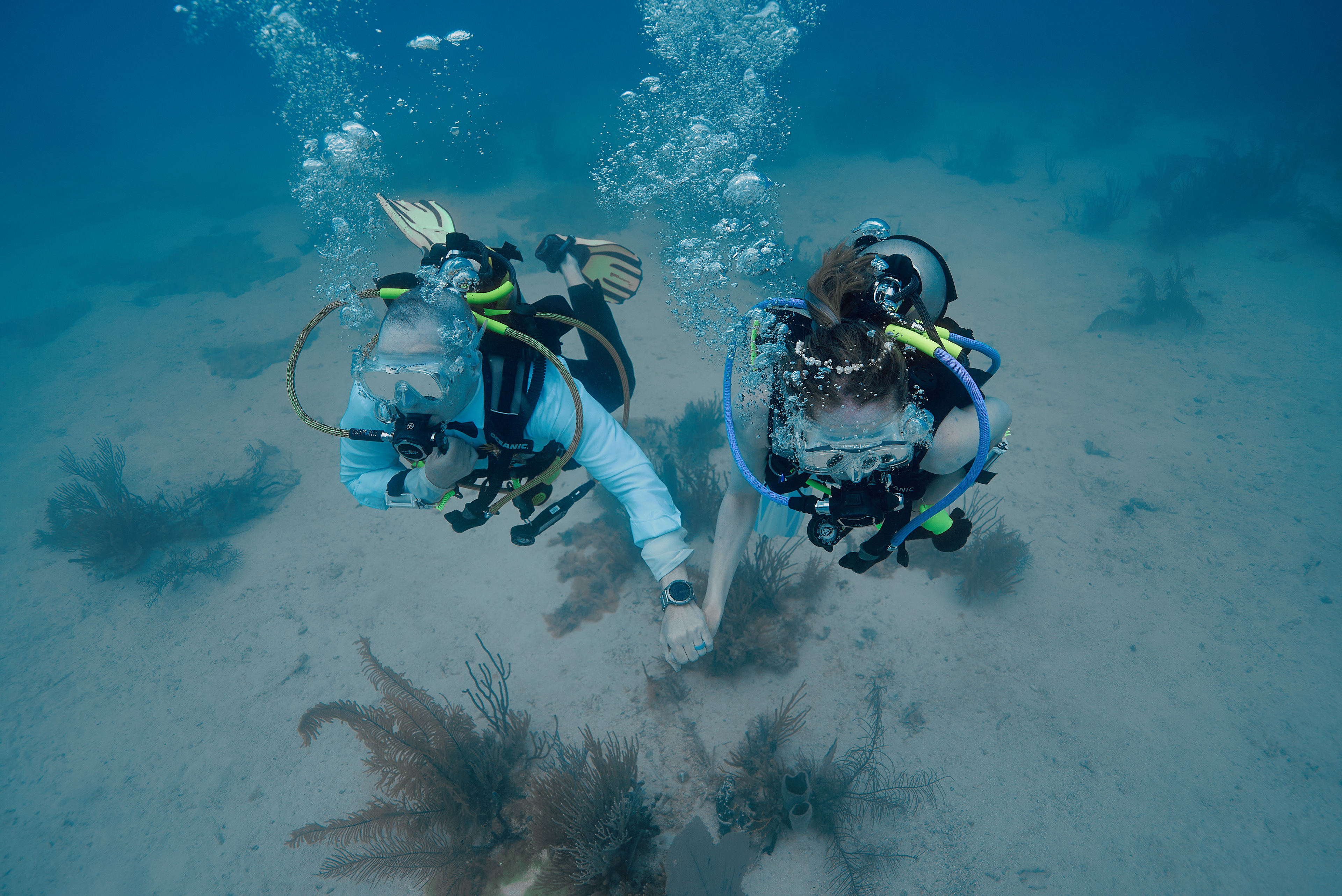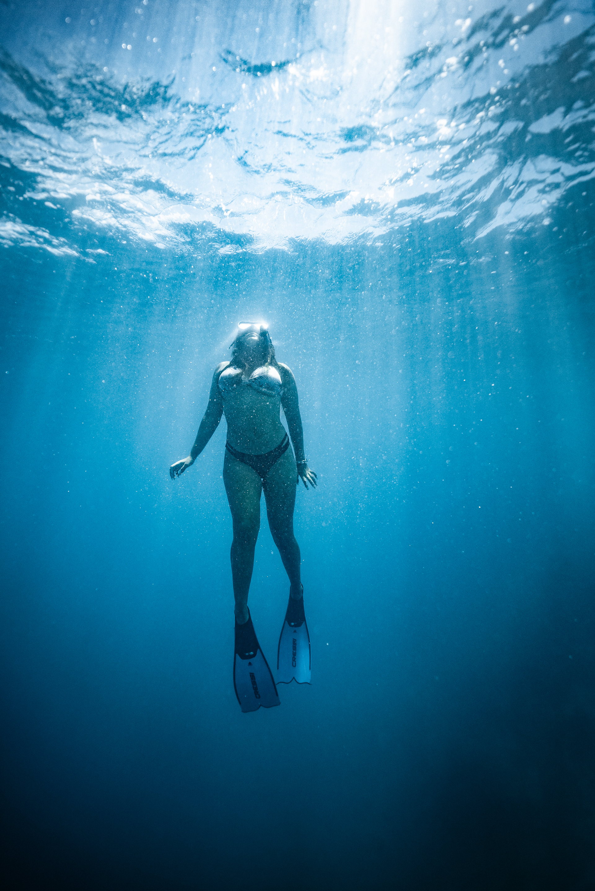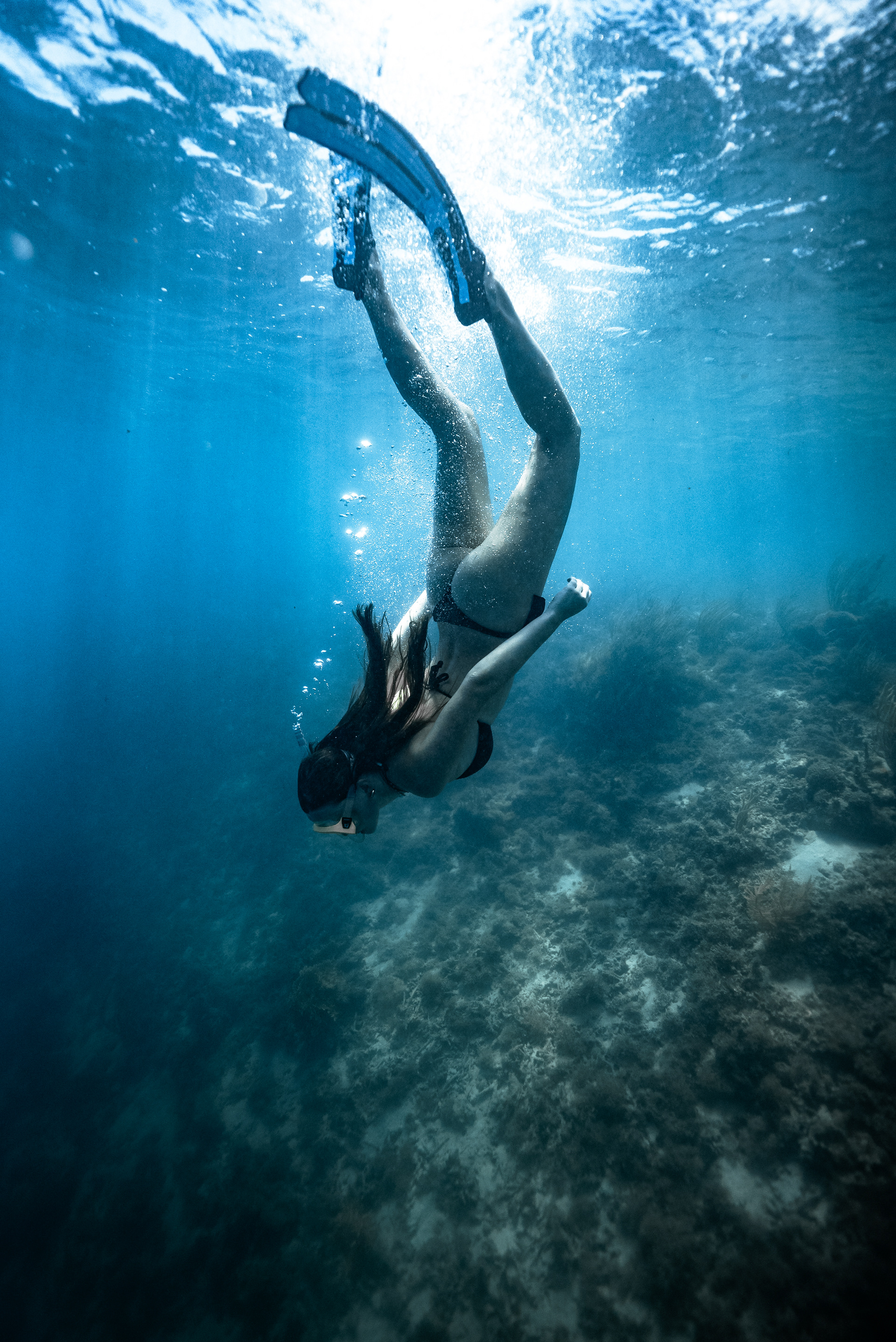 Underwater photography is the process of taking photographs while under water. It is usually done while scuba diving, but can be done while diving on surface supply, snorkeling, swimming, from a submersible or remotely operated underwater vehicle, or from automated cameras lowered from the surface.