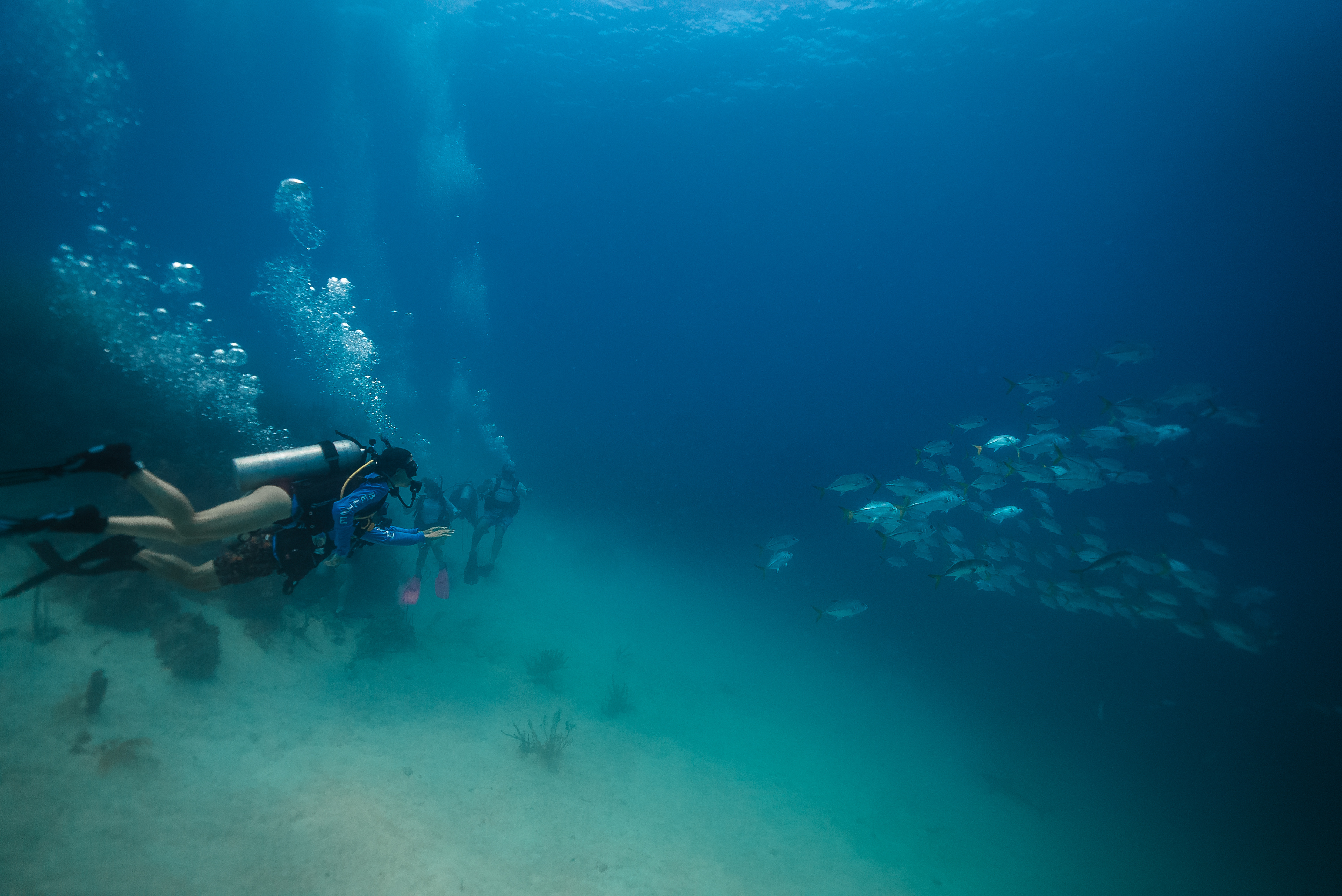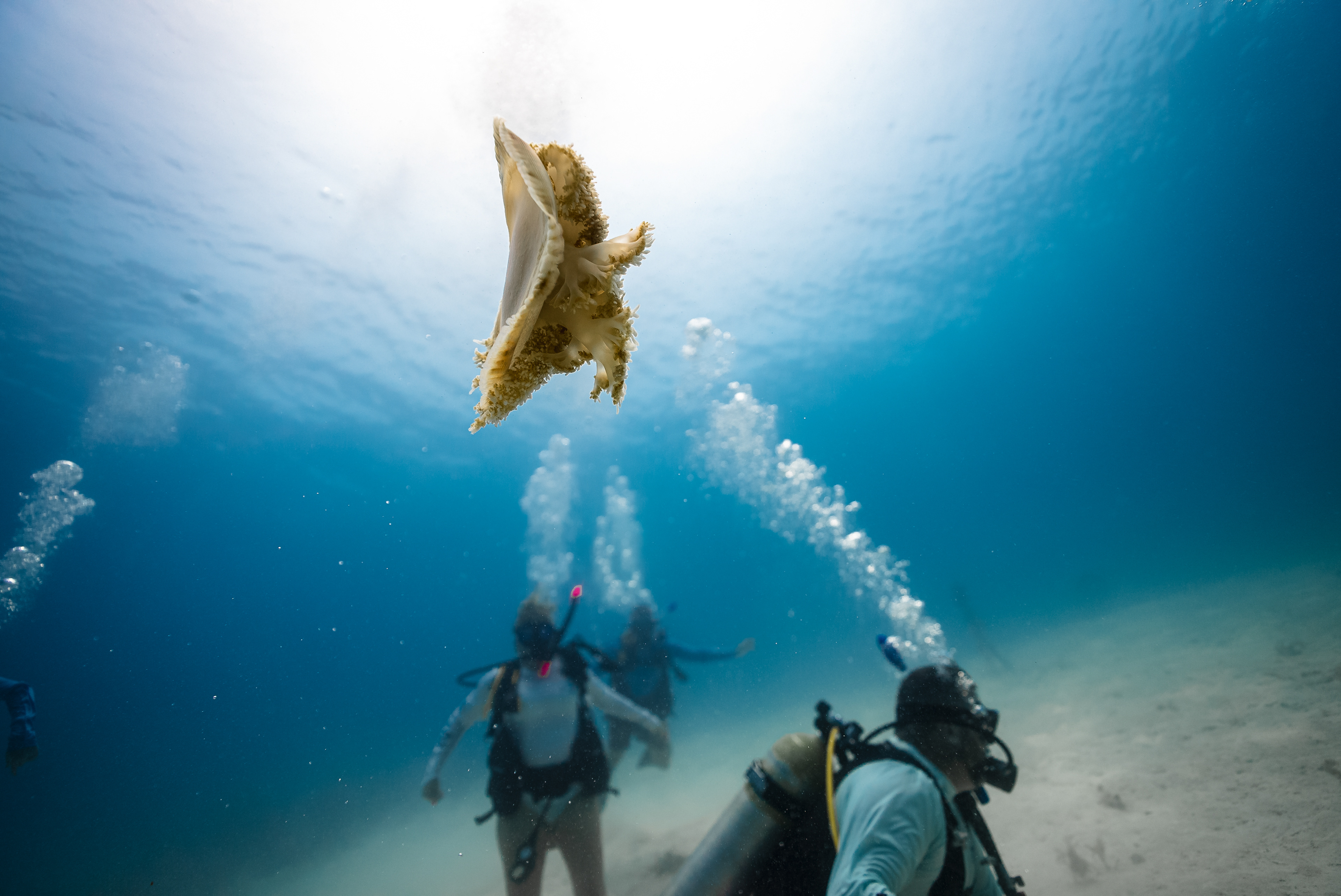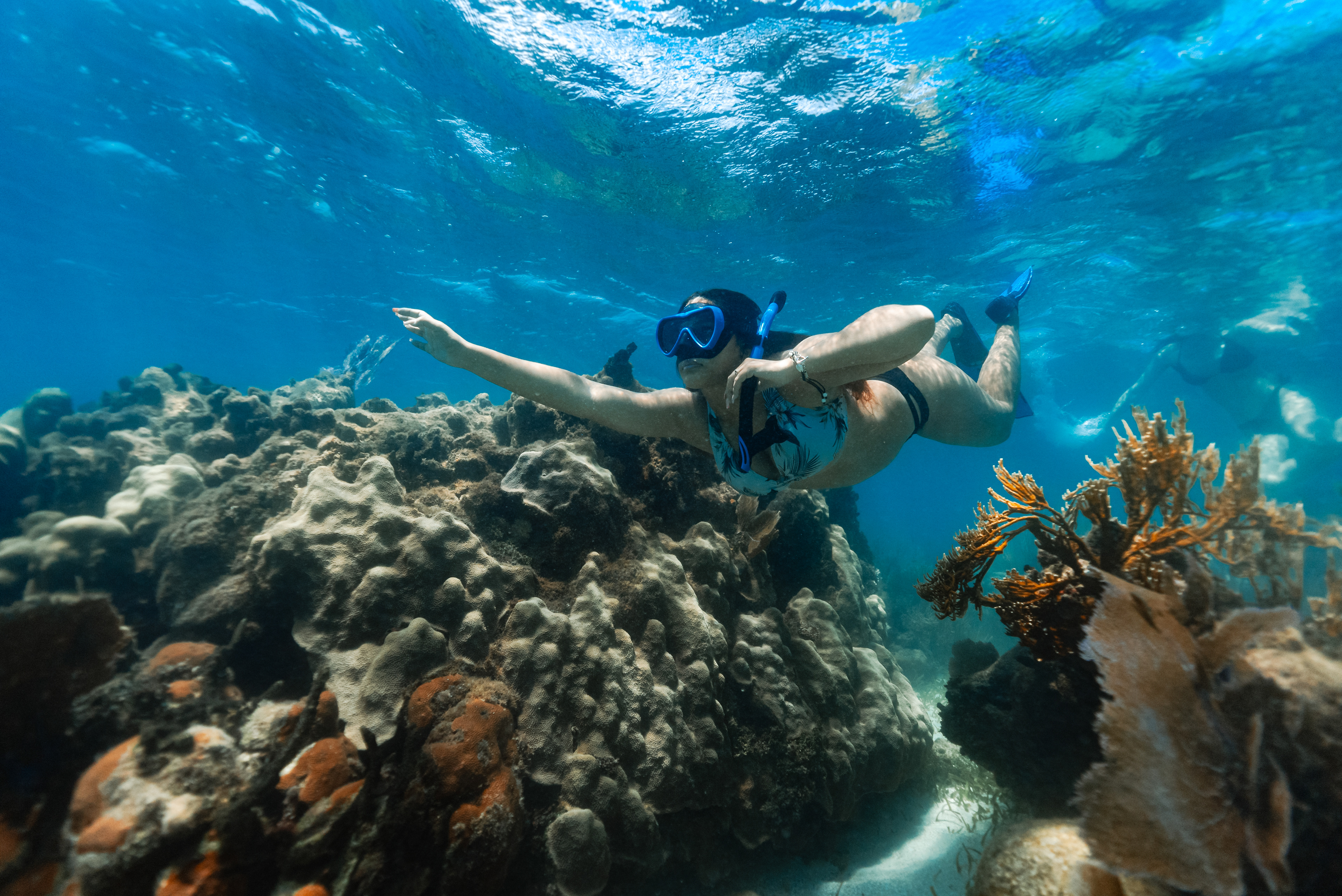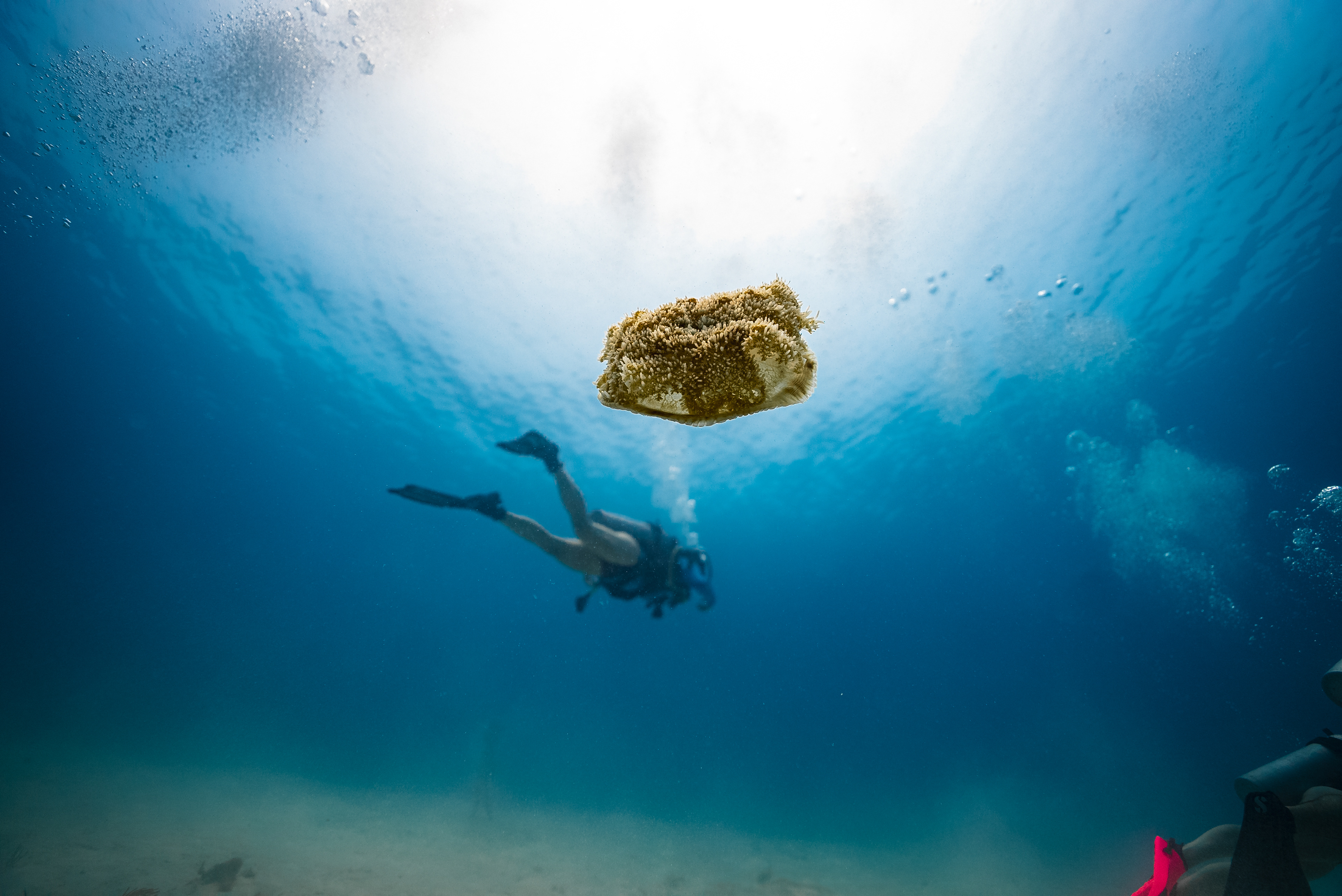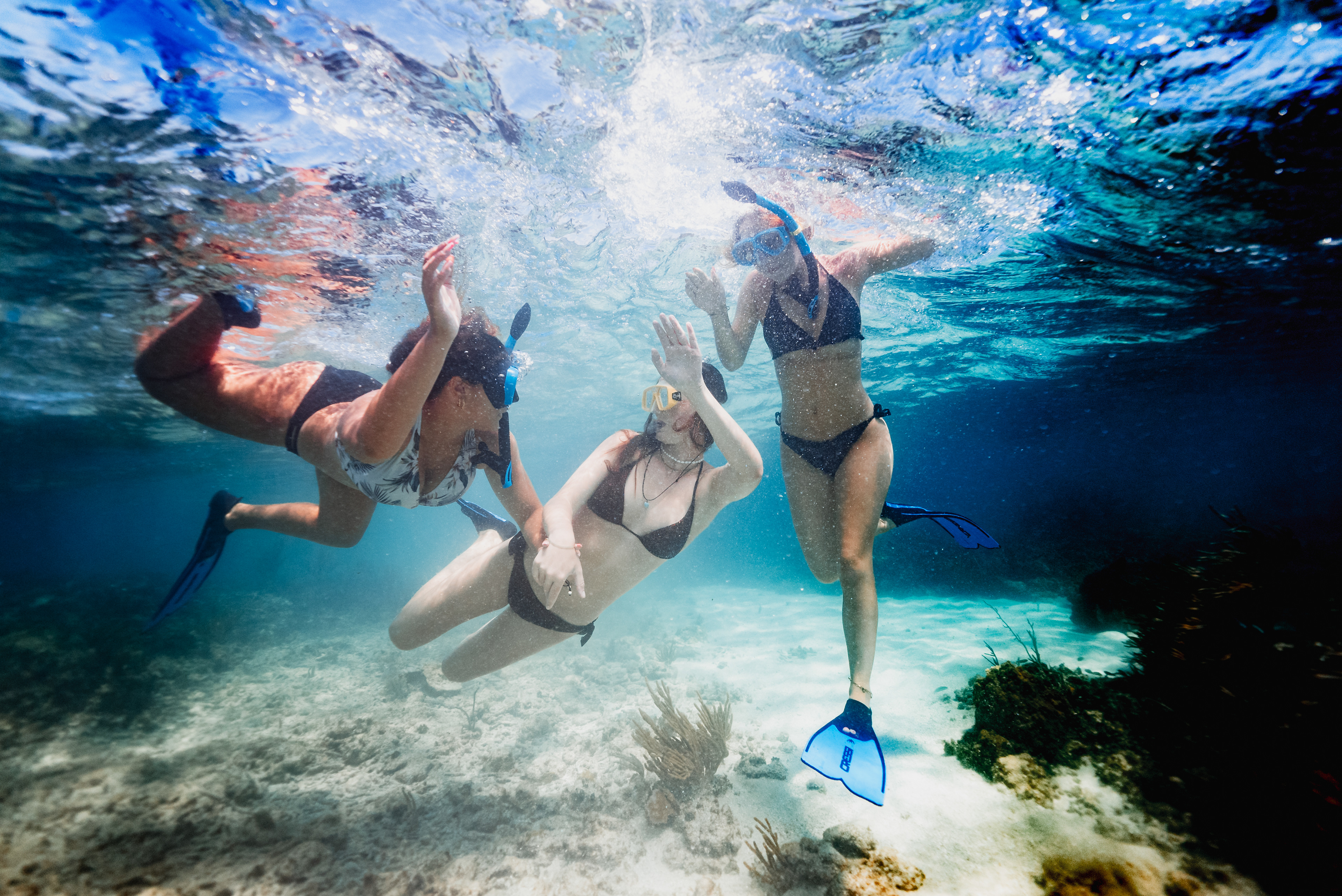 Underwater photography is the process of taking photographs while under water. It is usually done while scuba diving, but can be done while diving on surface supply, snorkeling, swimming, from a submersible or remotely operated underwater vehicle, or from automated cameras lowered from the surface.
