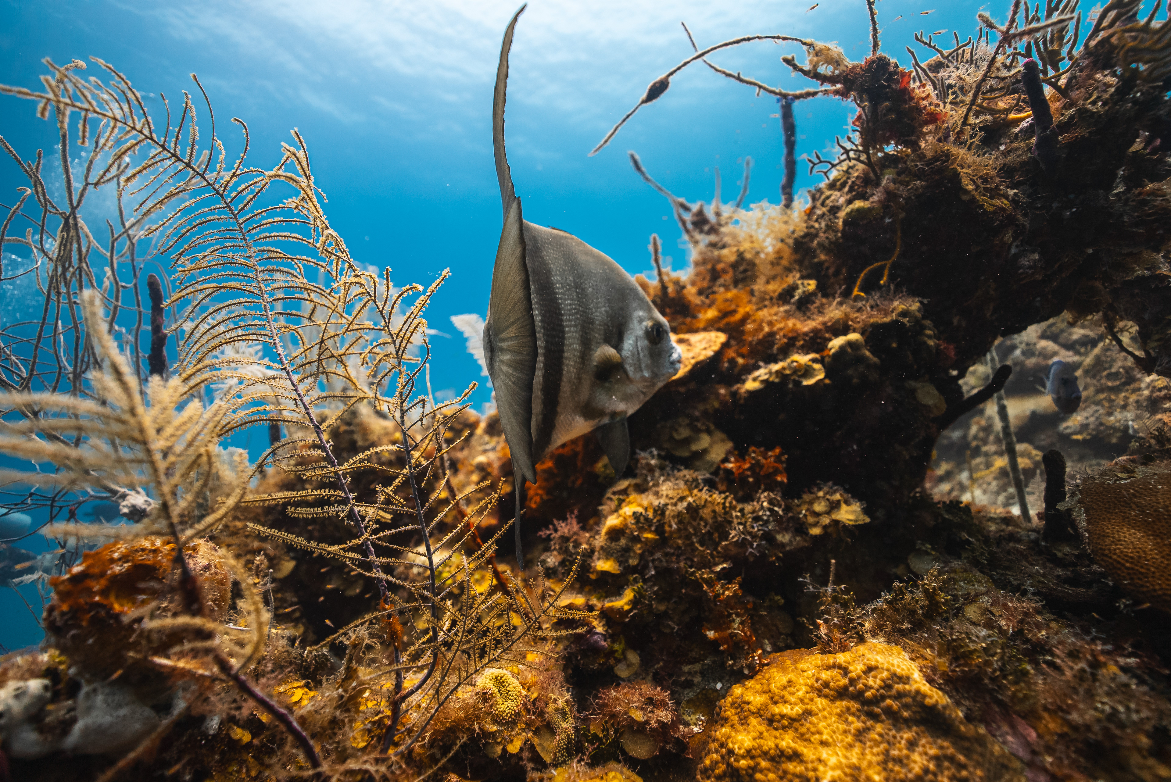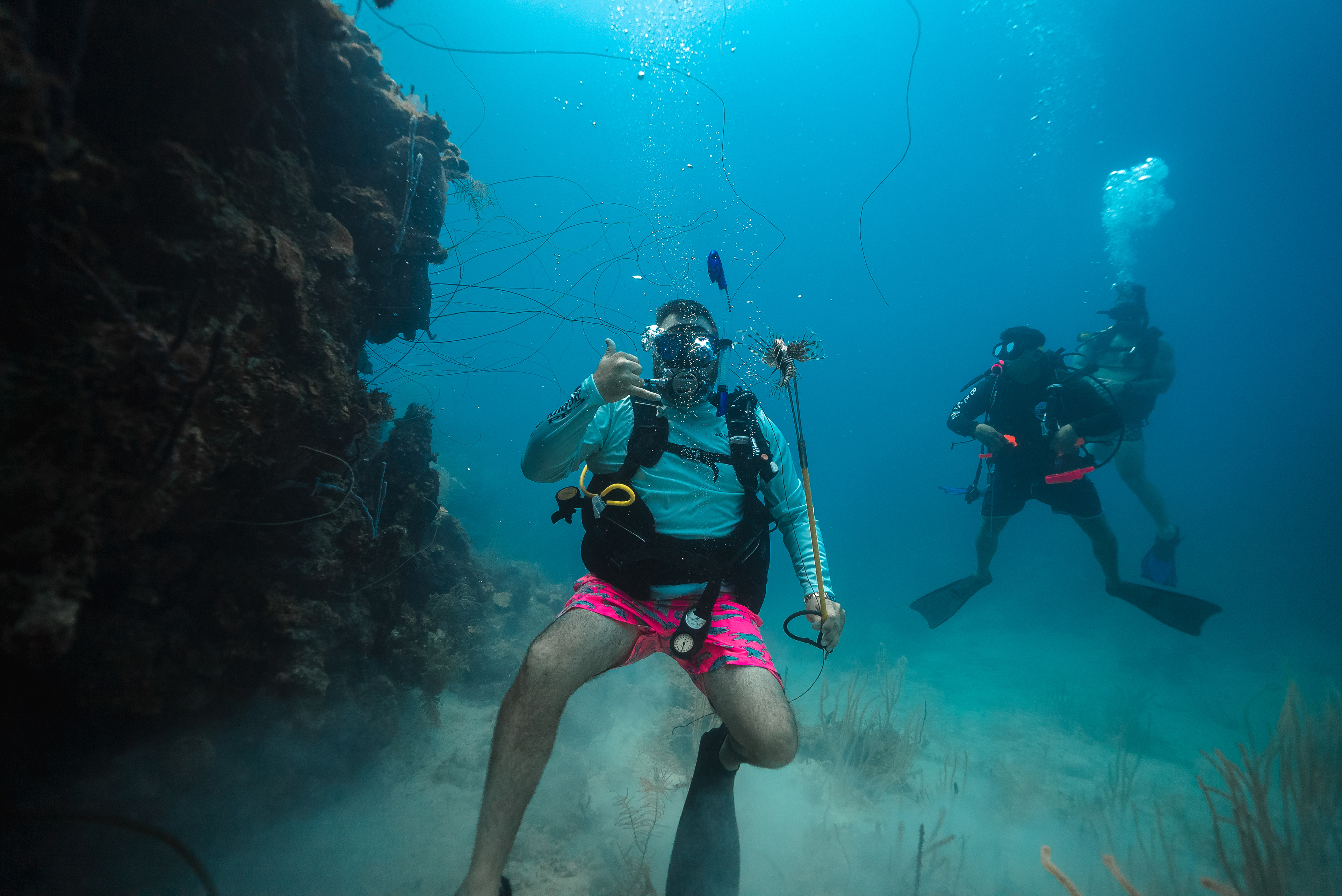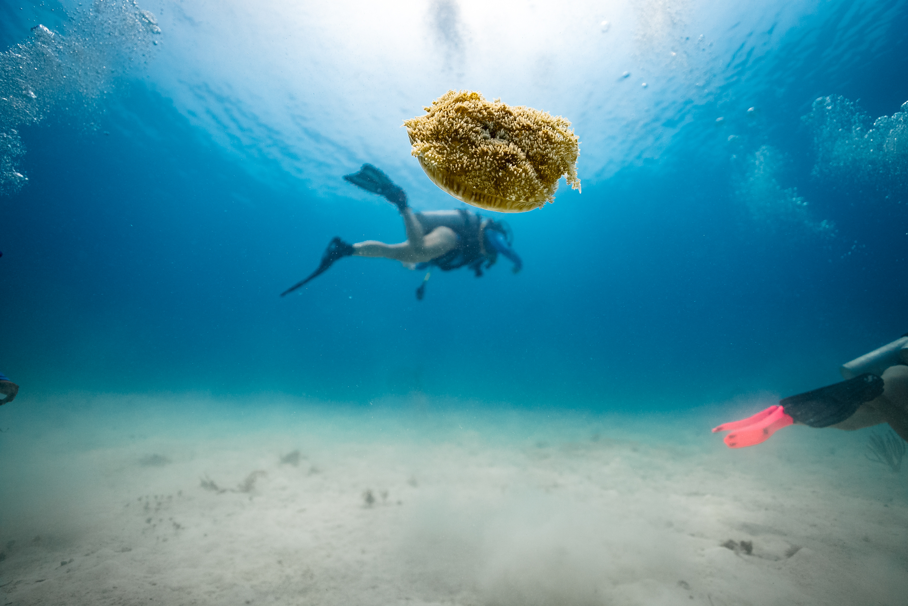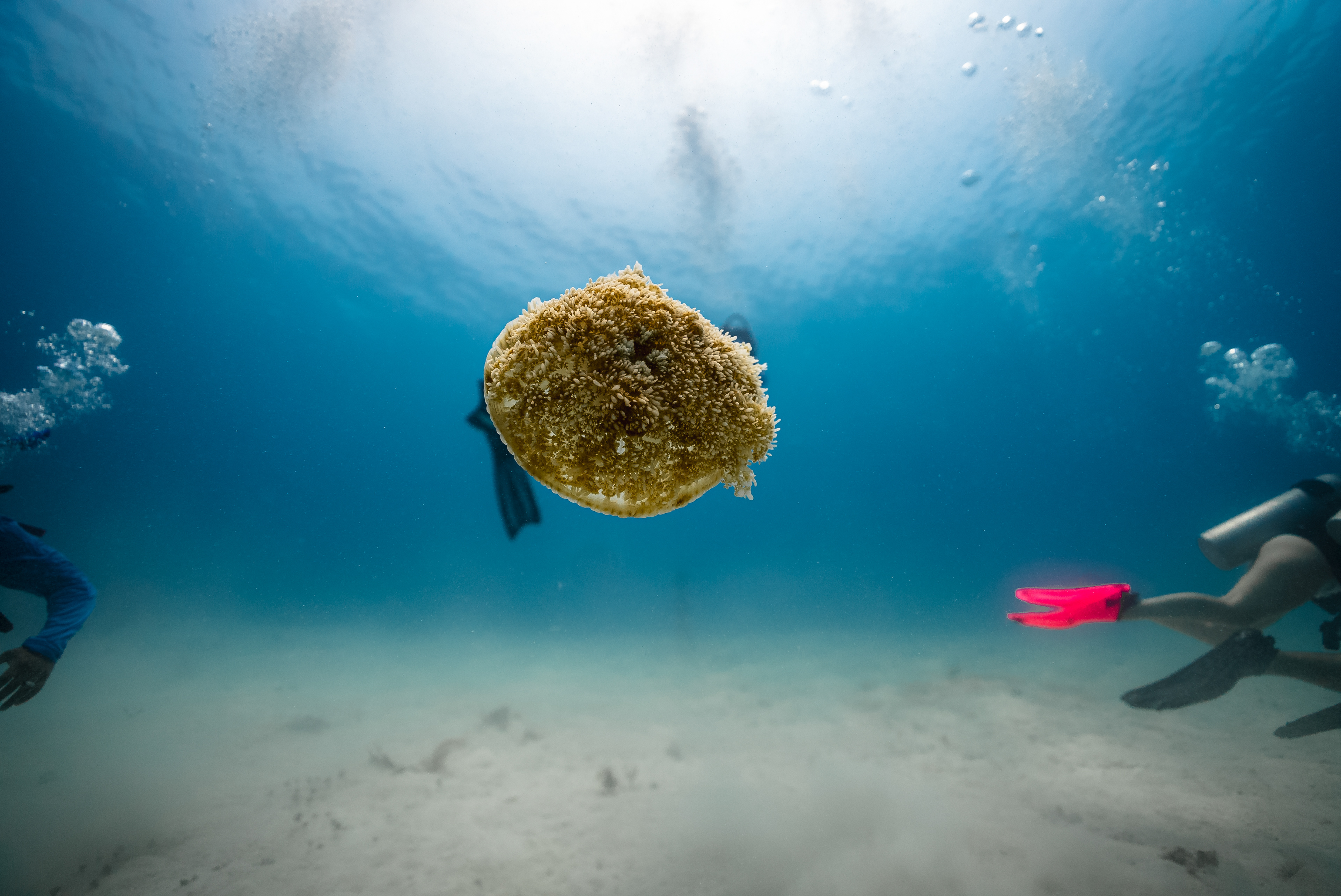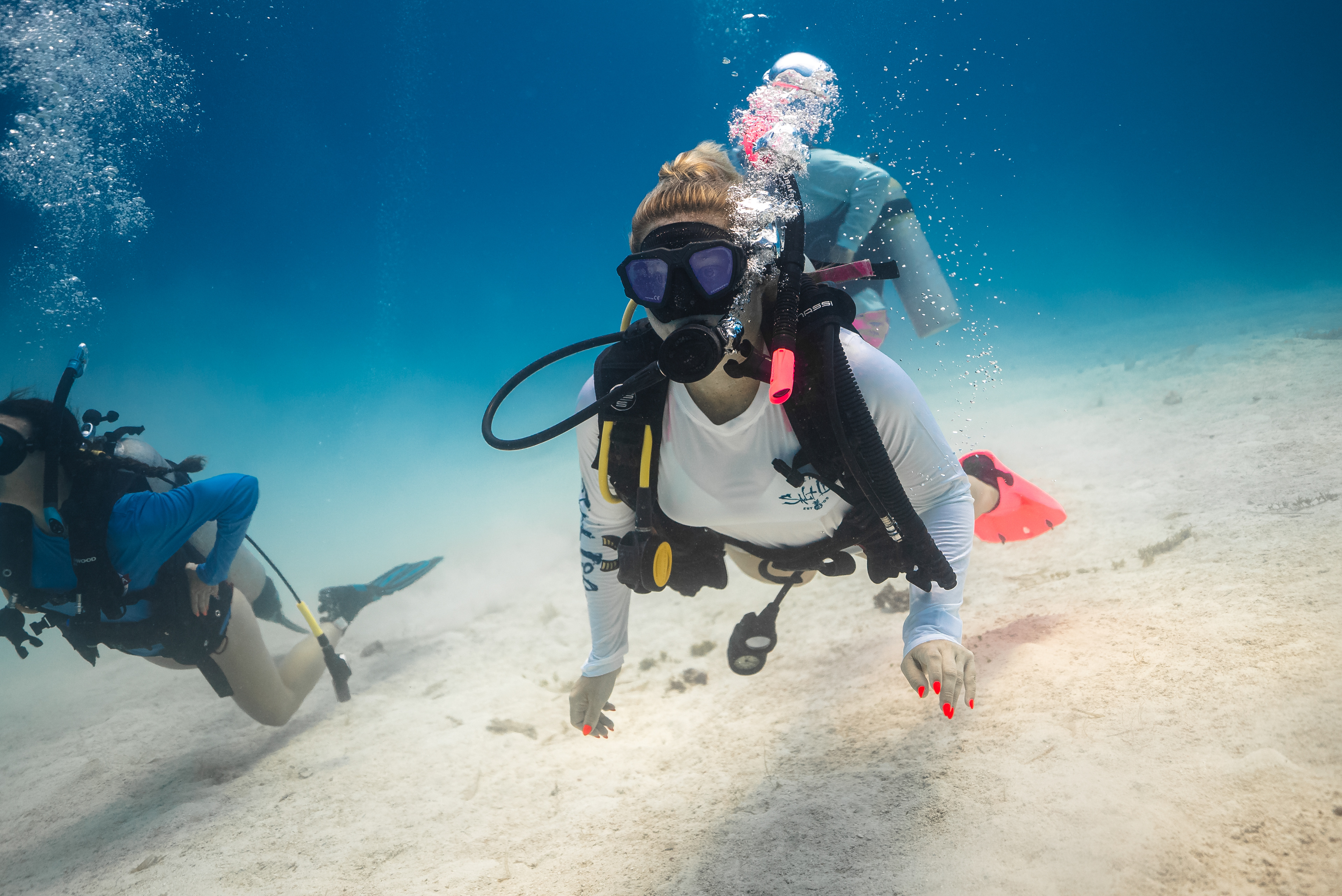 Underwater photography is the process of taking photographs while under water. It is usually done while scuba diving, but can be done while diving on surface supply, snorkeling, swimming, from a submersible or remotely operated underwater vehicle, or from automated cameras lowered from the surface.