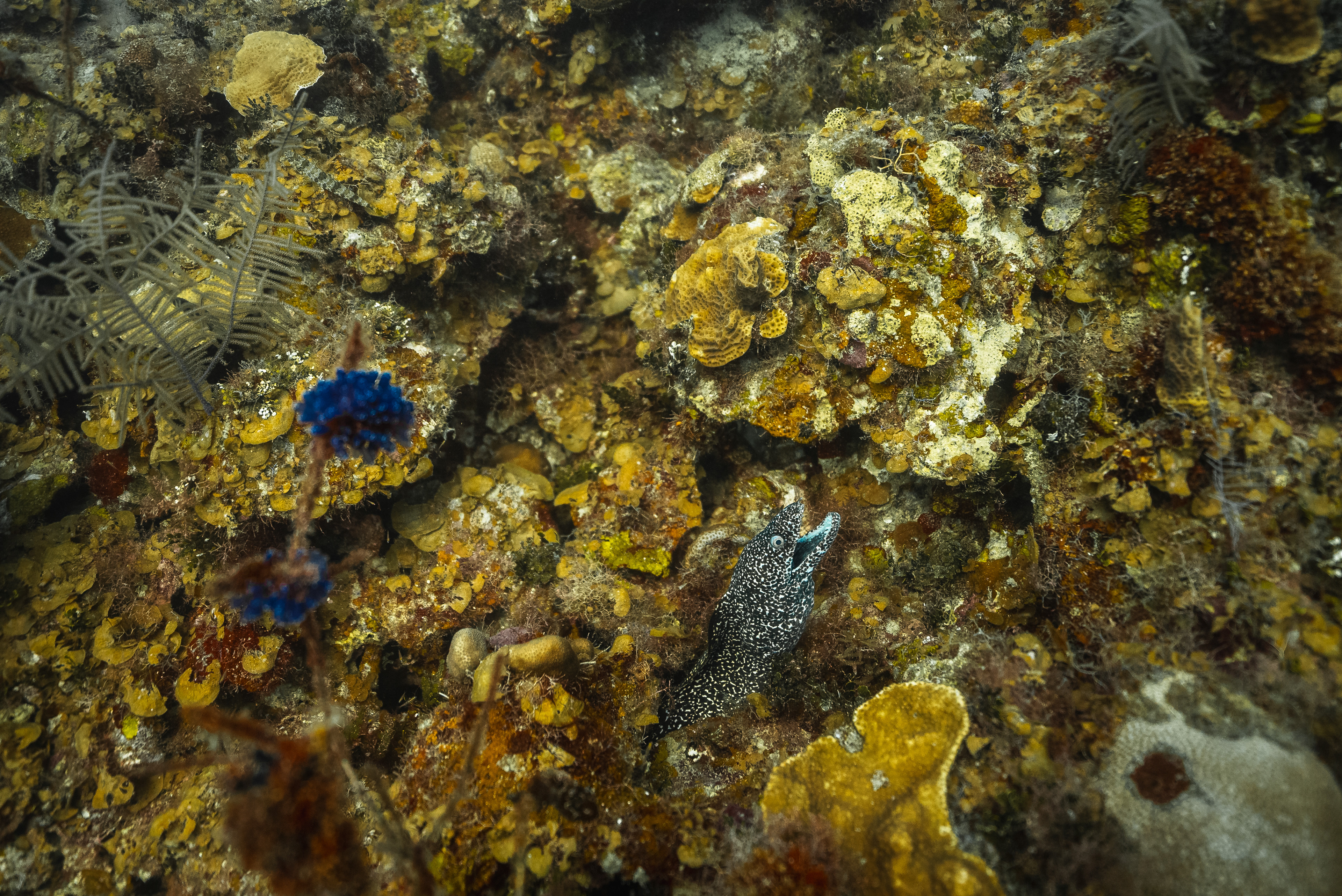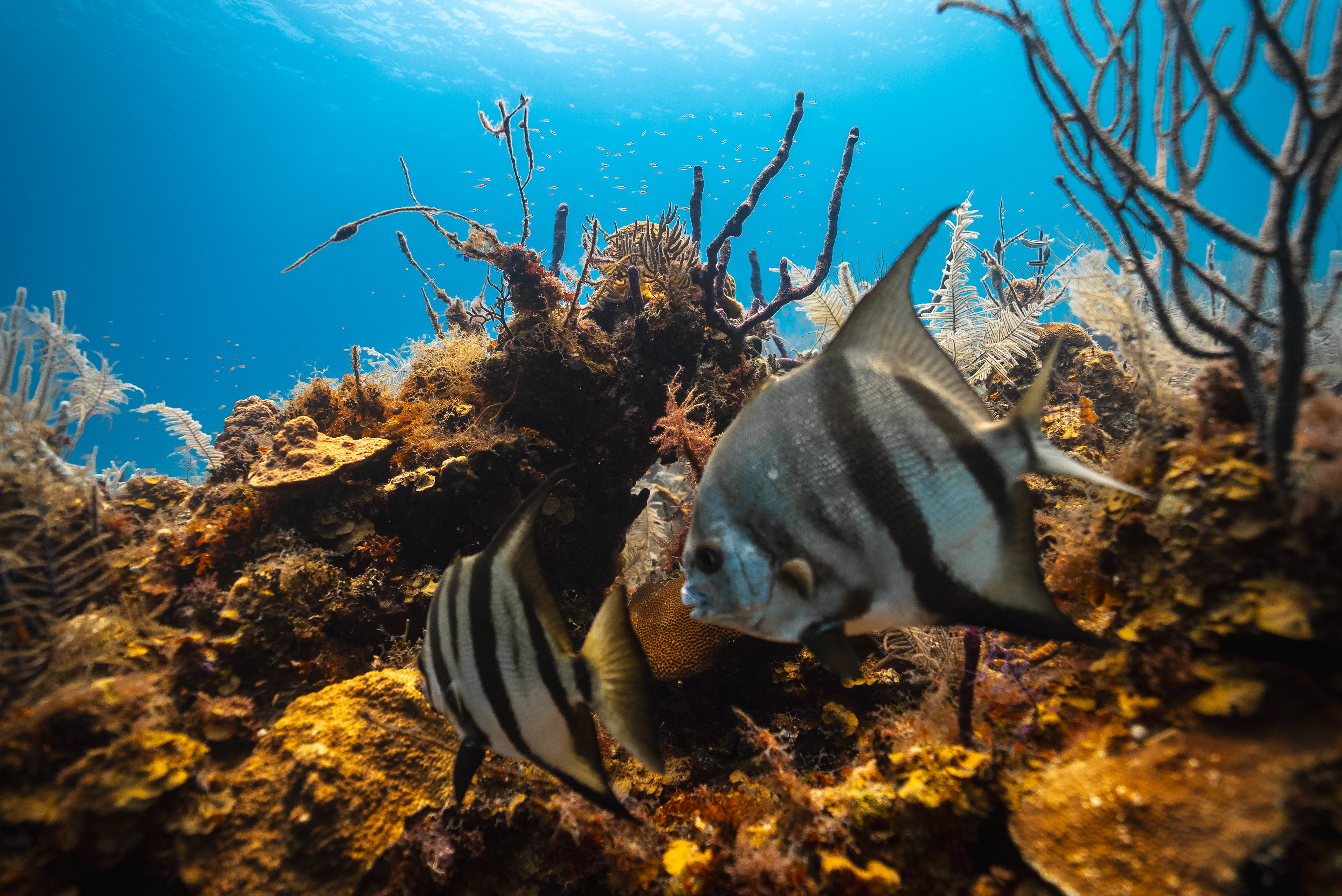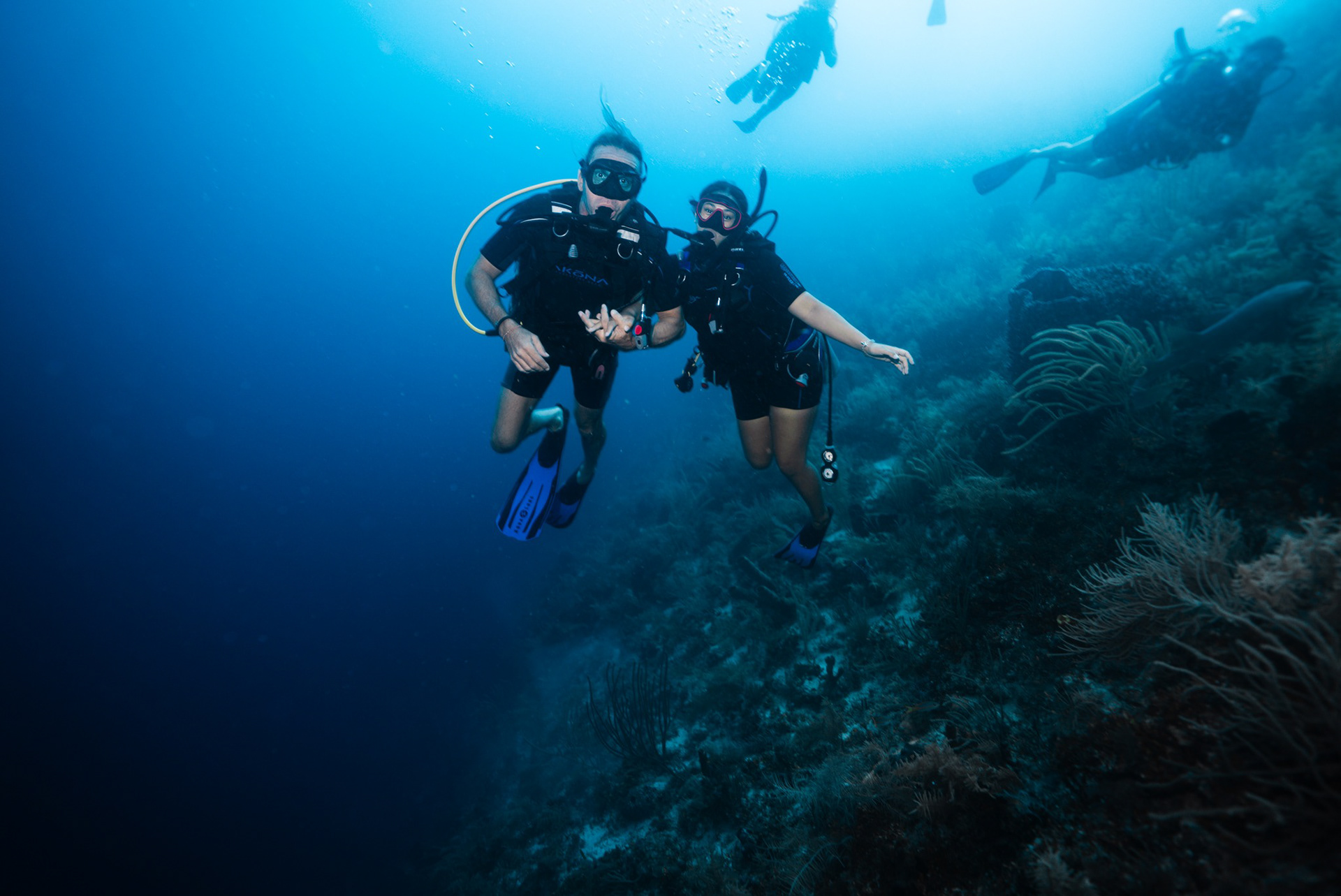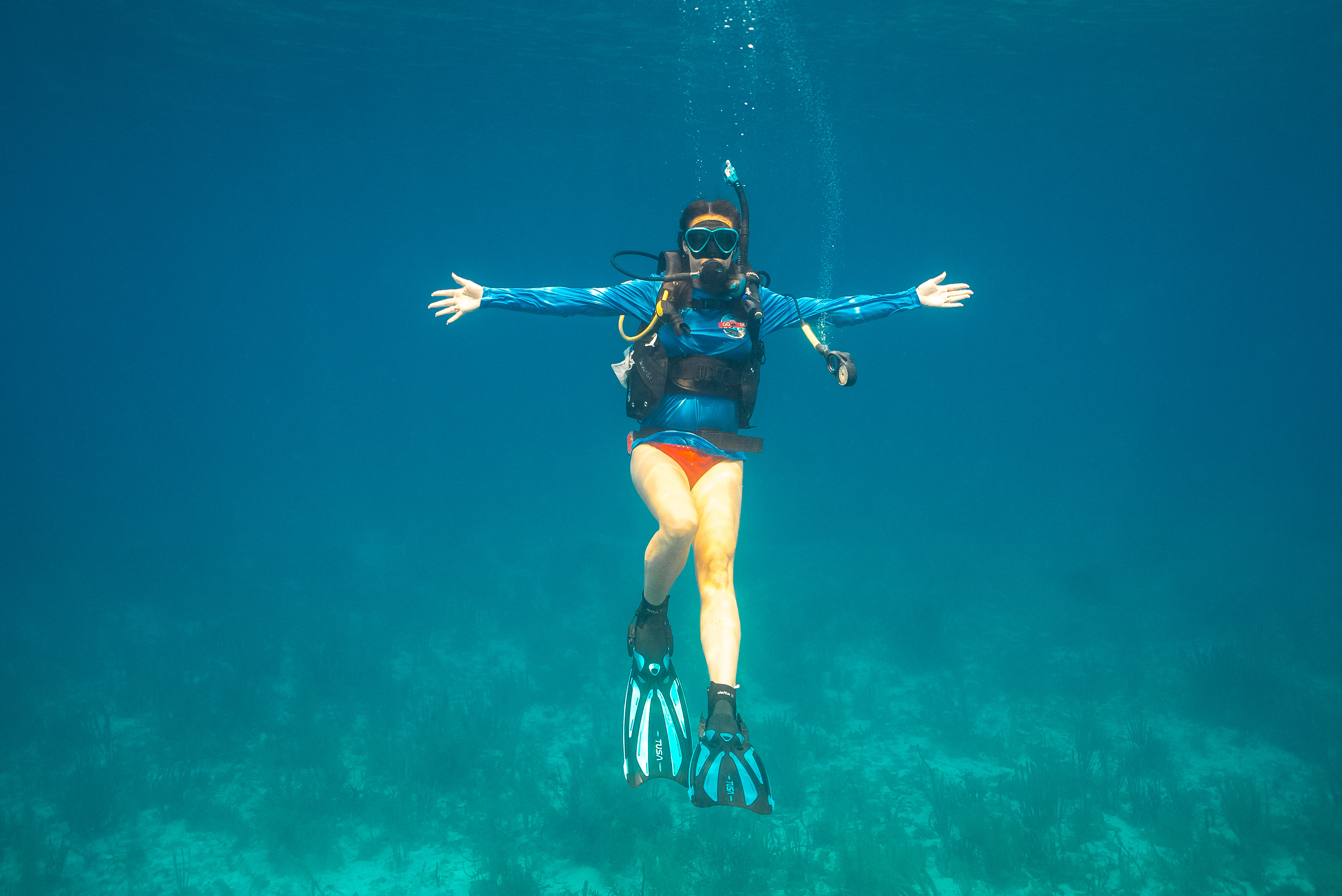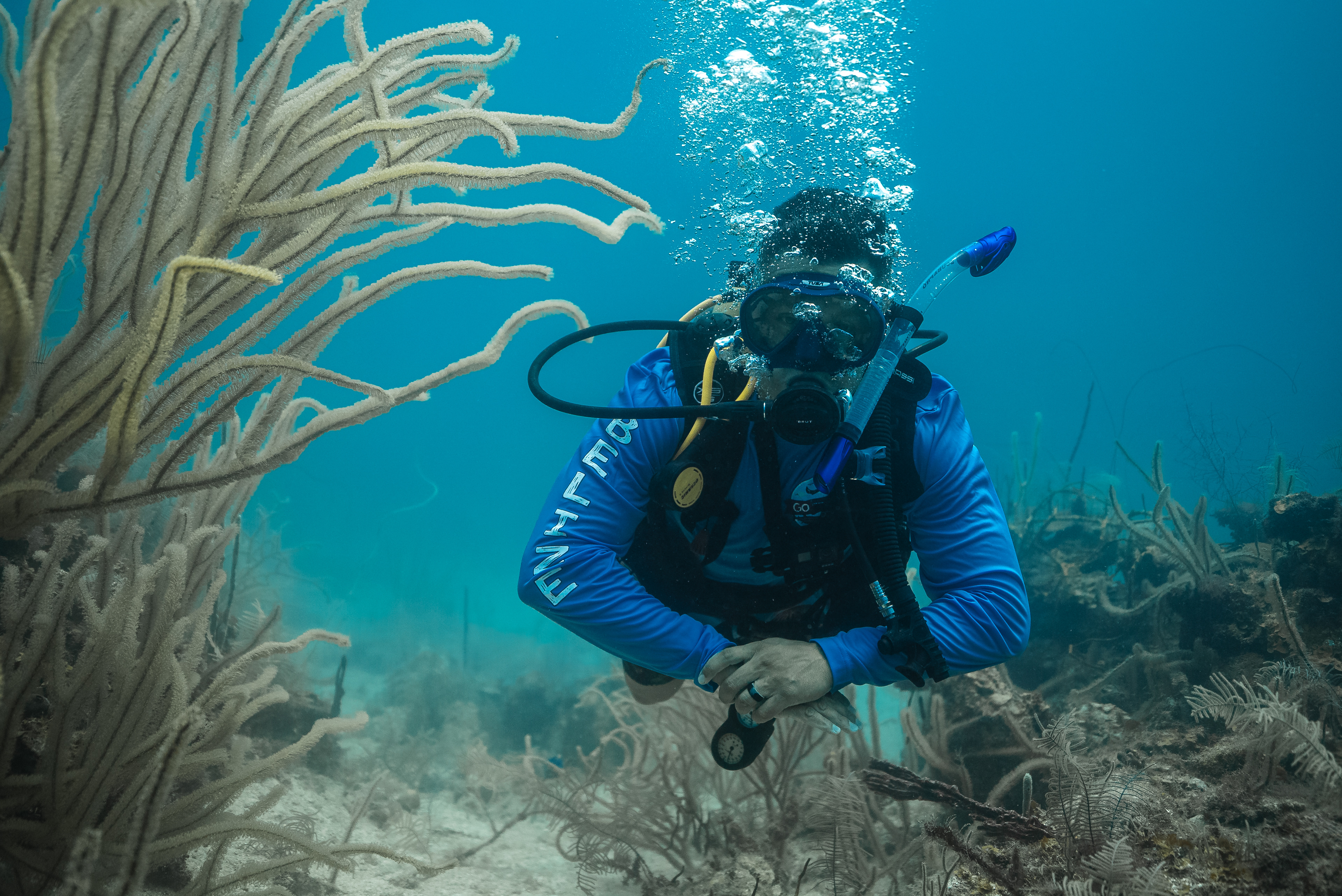 Underwater photography is the process of taking photographs while under water. It is usually done while scuba diving, but can be done while diving on surface supply, snorkeling, swimming, from a submersible or remotely operated underwater vehicle, or from automated cameras lowered from the surface.